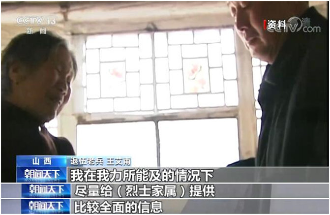 1996年至今,王艾甫已經將84張太原戰役陣亡將士通知書中的半數送回烈士親屬手中,他告訴我們,在漫長的尋親路上,他并不孤單,許多好心人、志愿者和媒體紛紛伸出援手。為烈士尋親不僅是讓英靈回歸故里,更重要的是對烈士精神的肯定與褒揚。接下來,他準備做一個網站,繼續幫烈士尋親,對于這件事他很有信心。