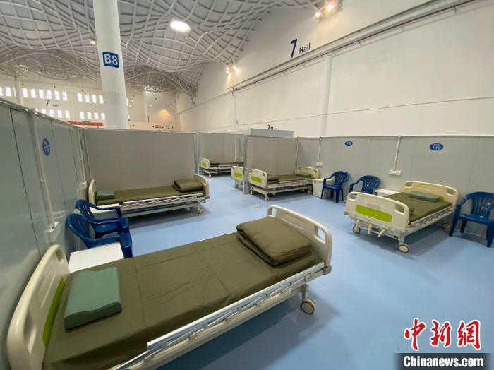 中新網海口4月6日電 (符宇群)“預計海口方艙醫院基礎設施4月8日建成,確保方艙醫院接到疫情防控指揮部投入使用指令后2天內能快速投入使用。”海口市城建集團副總經理毛昌成4月6日介紹,海口市方艙醫院各項建設工作正有條不紊推進中,目前7號館已采購并安裝到位病床1000張,已聯系大型商超等供應商,可提供2000套日用品及辦公用品根據需要及時到位。