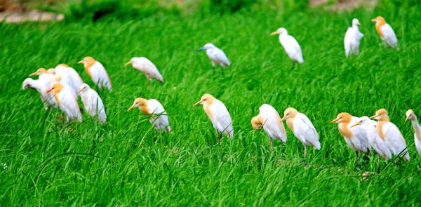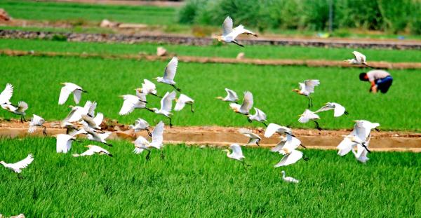 白鷺為群居動物,喜靜,對生存環境的選擇和要求非常嚴格,又被稱為“環保使者”。目前,成片的稻田綠植豐富、魚蝦鮮美,為它們提供了絕佳棲息地。
