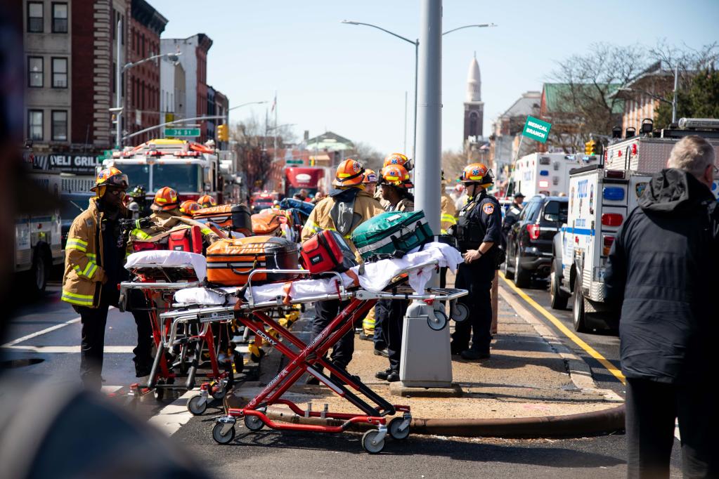 4月12日,救護人員在美國紐約發生槍擊的地鐵站附近工作。新華社發(郭克攝)