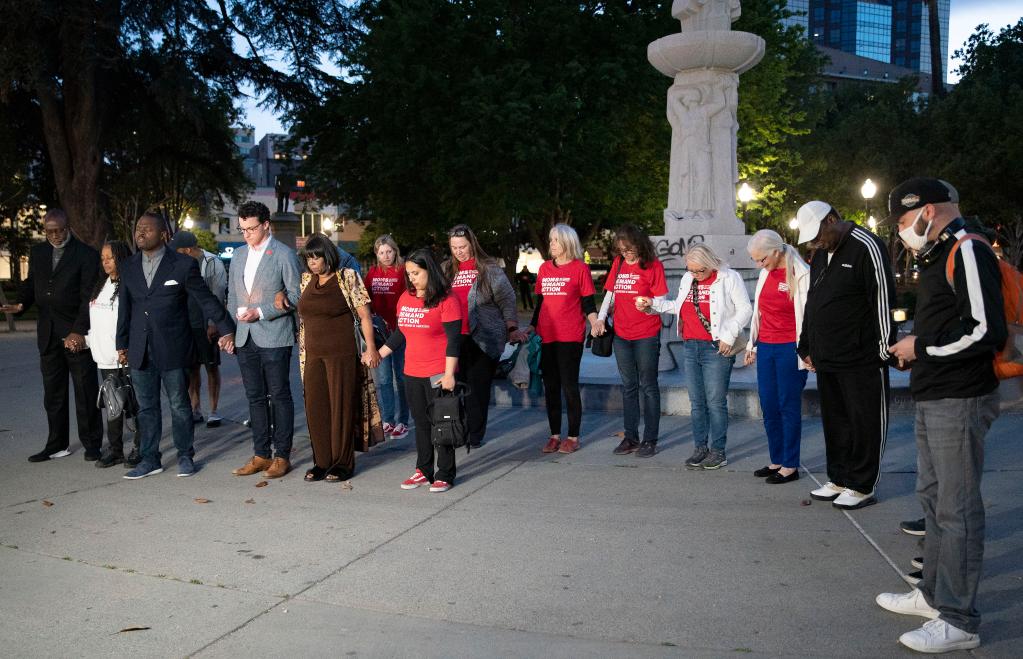 4月3日,人們聚集在美國加利福尼亞州首府薩克拉門托市中心的一處公園里參加守夜活動,悼念當天發生的槍擊事件遇難者。新華社發(李建國攝)