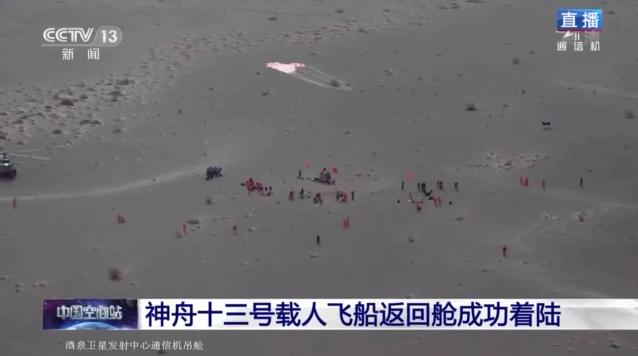 神舟十三號載人飛船返回艙主降落傘打開。