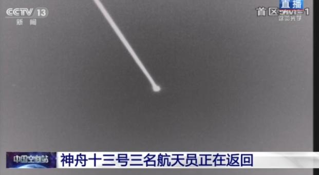 神舟十三號載人飛船正在返回,地面光學(xué)設(shè)備捕獲返回艙圖像。
