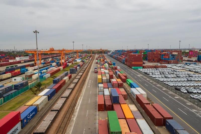 圖為繁忙的上海蘆潮港站集裝箱堆場。李 忱攝