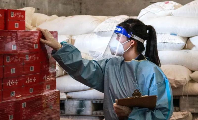 順利保供的前提是做好防疫。3月底,北郊站的工作人員就實行了閉環(huán)管理。他們吃住在單位,工作時身穿防護(hù)服,佩戴防護(hù)口罩,再戴上橡膠手套,在高溫下“全副武裝”保障物資運送。