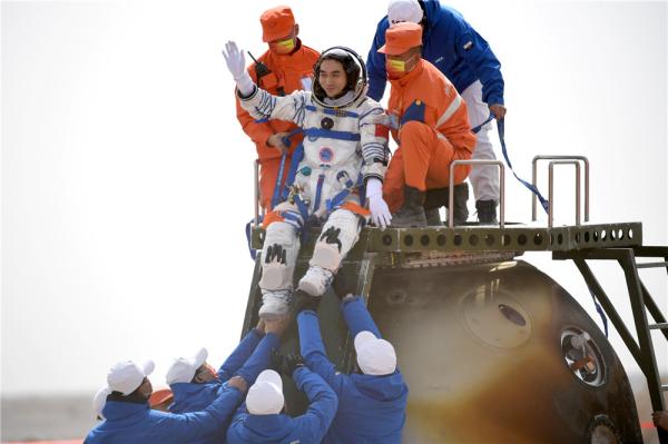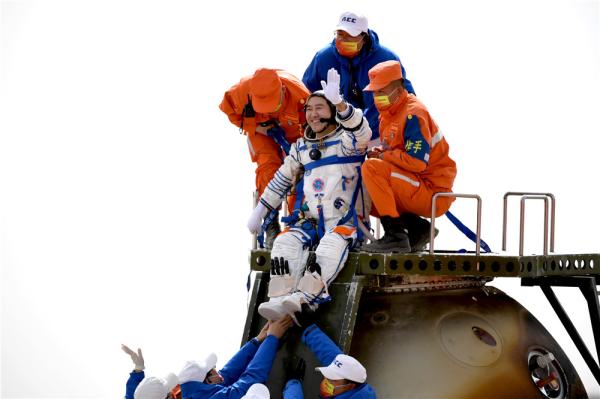 4月16日,神舟十三號載人飛船返回艙在東風著陸場成功著陸。這是航天員王亞平安全順利出艙。新華社記者 彭源 攝