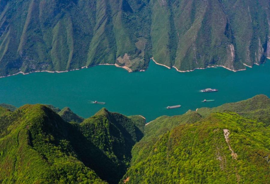 4月10日拍攝的長江三峽第一峽——瞿塘峽景色。(無人機照片)新華社記者 王全超 攝