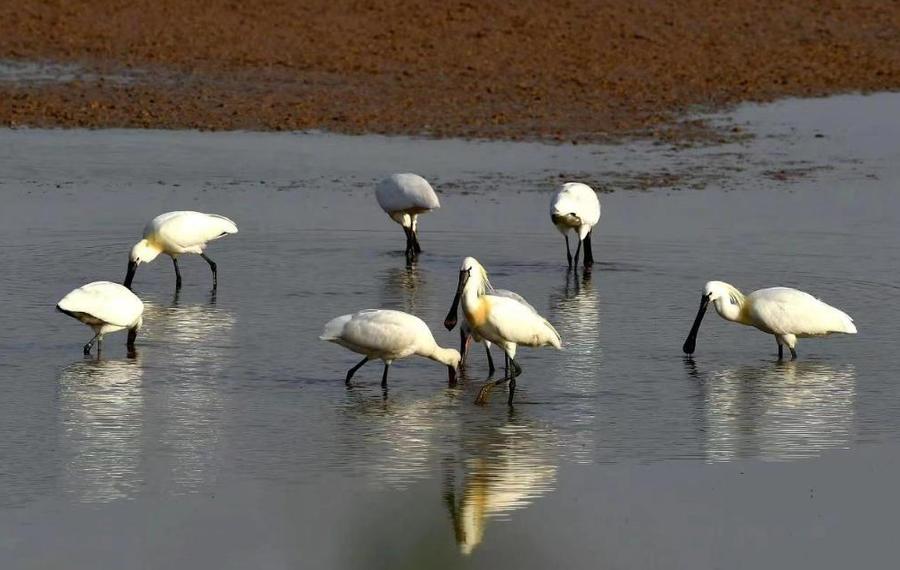 這是4月10日在河南黃河濕地國家級自然保護區孟津段拍攝的白琵鷺。新華社發(馬朝紅攝)
