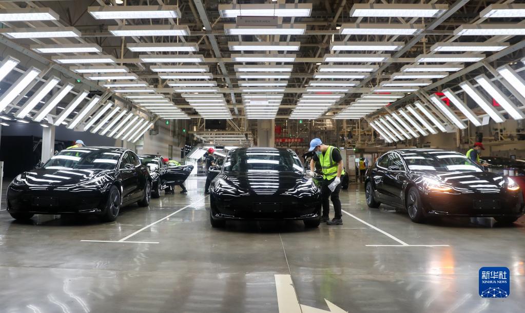 工作人員在特斯拉上海超級工廠內(nèi)作業(yè)(2020年11月20日攝)。新華社記者 丁汀 攝