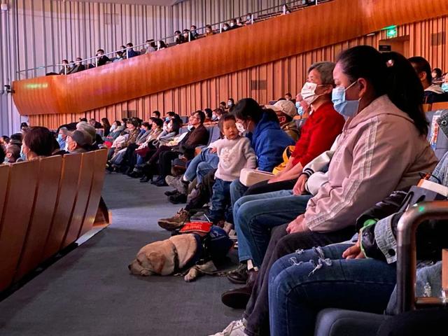 ↑導(dǎo)盲犬隨主人走進(jìn)西安音樂廳