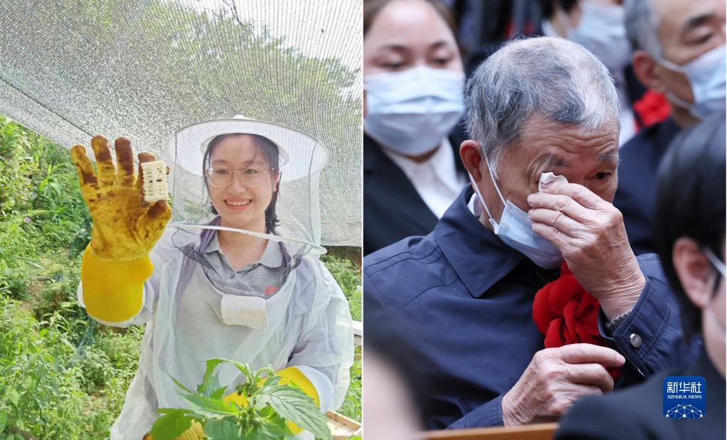 這張拼版照片的左圖為黃文秀生前工作照(資料照片);右圖為2021年2月25日,黃文秀的父親黃忠杰在全國脫貧攻堅總結表彰大會上(新華社記者劉彬攝)。新華社發