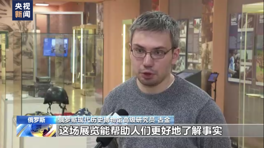 俄羅斯現代歷史博物館高級研究員 古金:這場展覽能幫助人們更好地了解事實,了解北約的歷史,了解現在世界正在發生的事件及其原因,我們的展品包括最近幾個月俄軍在烏克蘭執行軍事任務時繳獲的最新的武器系統、技術設備、軍隊制服等,這證明北約正在深度介入烏克蘭局勢。