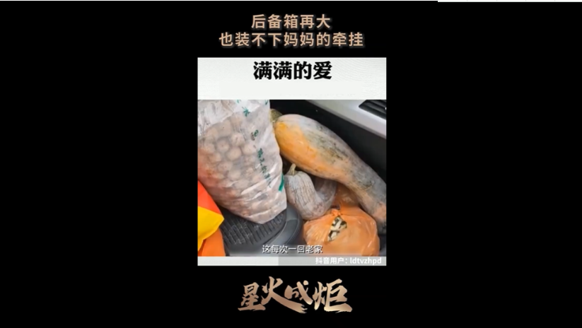 央視網(wǎng)消息:被塞滿的后備箱是承載媽媽最多不舍的地方。再大的后備箱,也放不下她對我們的牽掛。臨行滿滿裝,母愛盡在不言中。