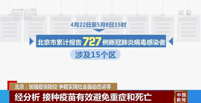 發布會上,相關負責人還介紹,4月22日—5月8日15時,北京市累計報告727例新冠肺炎病毒感染者。經過分析,接種疫苗是預防感染新冠病毒后導致重癥、危重癥和死亡的有效措施。