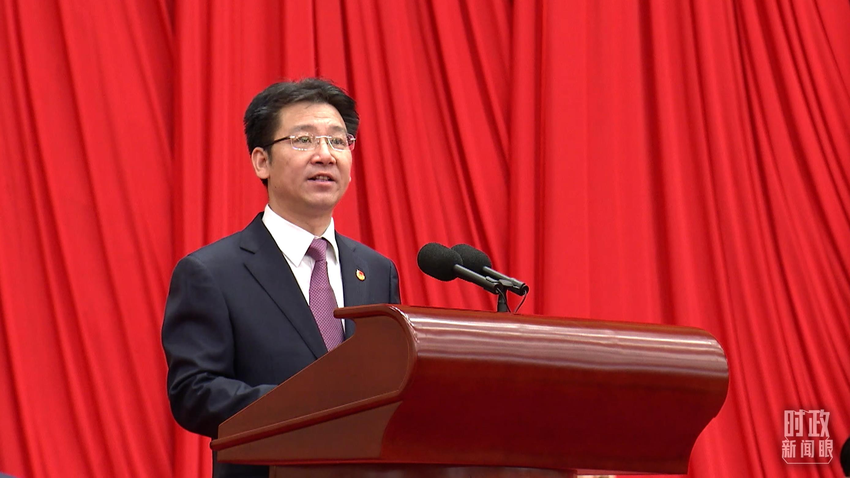 △共青團中央書記處第一書記賀軍科在大會上發言。(總臺央視記者 張曉鵬拍攝)