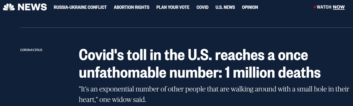 美國現階段每天仍有大約360人死亡,遠遠高于疫情初期大多數人的想象,報道稱,這也“歸功”于當時的總統特朗普在執政期間多次淡化疫情的嚴重性。2020年2月28日,特朗普在南卡羅來納州北查爾斯頓的一場集會上曾對人群說,“這是他們(民主黨)的新騙局。到目前為止,我們還沒有人死于新冠病毒! 然而第二天,華盛頓的衛生官員就宣布了一個不可避免的消息:該州一名新冠病毒患者死亡。此后的兩年間,死亡病例數字一度飆升至今,最終突破百萬,其中超過一半的死亡病例發生在2021年1月拜登繼任后。
