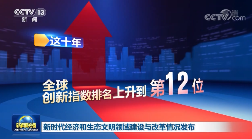 這十年,創新成為引領發展的第一動力。全社會研發投入與國內生產總值的比例由1.91%提高到了2.44%,全球創新指數的排名由第34位上升到了第12位。