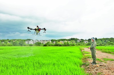 孫宏飛操作無人機進行植保。光明圖片