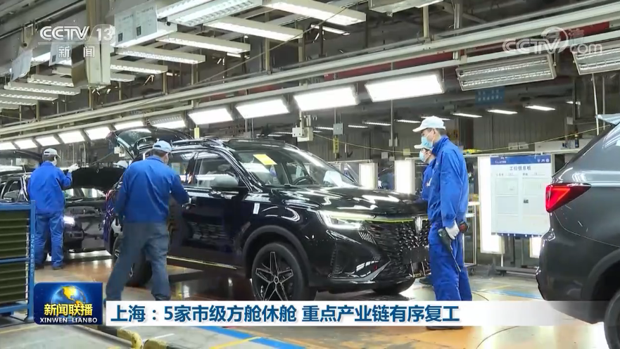 目前,上海重點產業鏈正有序復工。上汽乘用車等4家整車企業全面復工,基本實現連續穩定生產,帶動上下游零部件配套企業恢復生產。