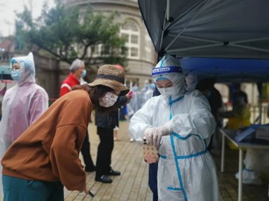 清晨六點居委會報道、280戶人家逐一上門通知、一上午鮮有歇腳的機會……這是上海滬劇院演奏團黨支部書記洪立勇、上海滬劇院副院長姚慧在核酸檢測日的工作日常。自四月初以來,洪立勇的志愿者生涯已經一月有余。在核酸檢測現場,他不僅要提醒居民們排隊時保持好秩序,還要在采樣結束后傳遞整個小區的樣本。近1500份樣本,洪立勇要分好幾次拿,東西雖然不沉,但他都格外小心。姚慧也是小區中的第一批志愿者,一開始志愿者只有寥寥十余位,現在則有近200位。