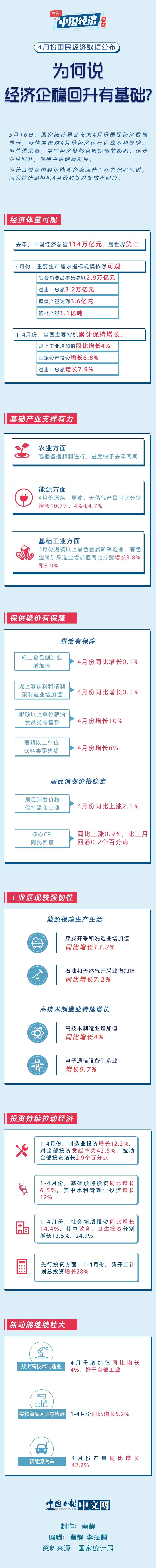 但總體來看,中國經濟能夠克服疫情的影響,逐步企穩回升,保持平穩健康發展。為什么說我國經濟能夠企穩回升?在答記者問時,國家統計局根據4月份數據對此做出回應。