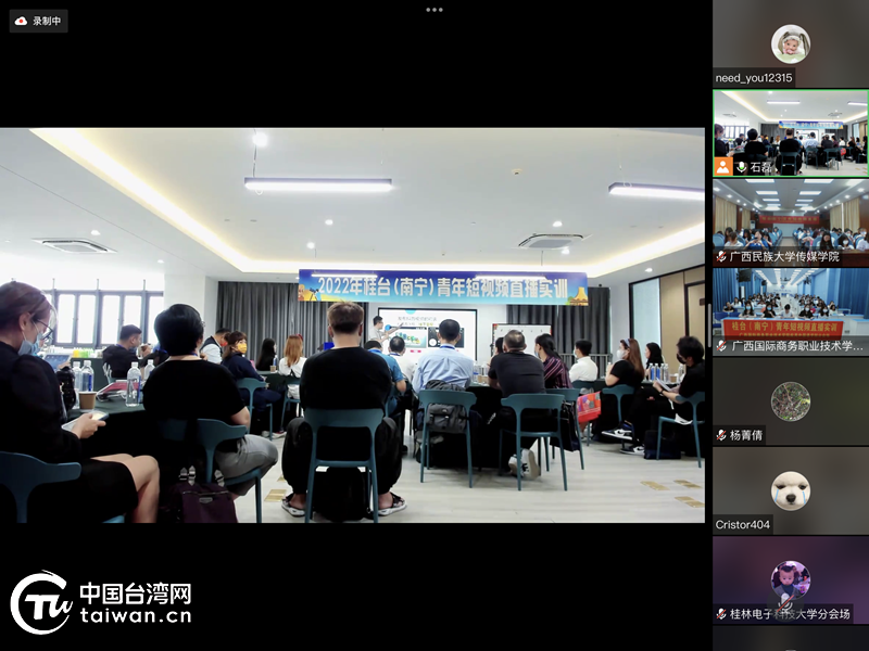 此次活動還同步開展線上實訓,全國各地臺青代表、南寧市新的社會階層人士代表、南寧市青年一代企業家聯合會代表,在邕臺商、臺師、臺生、陸配代表,在邕高校學生代表共600多人通過線上形式參與。