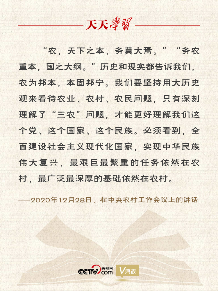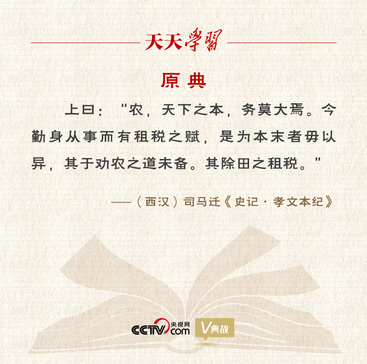 “農,天下之本,務莫大焉”語出《史記·孝文本紀》,意思是農業是國家的根本,是最重要的事情。
