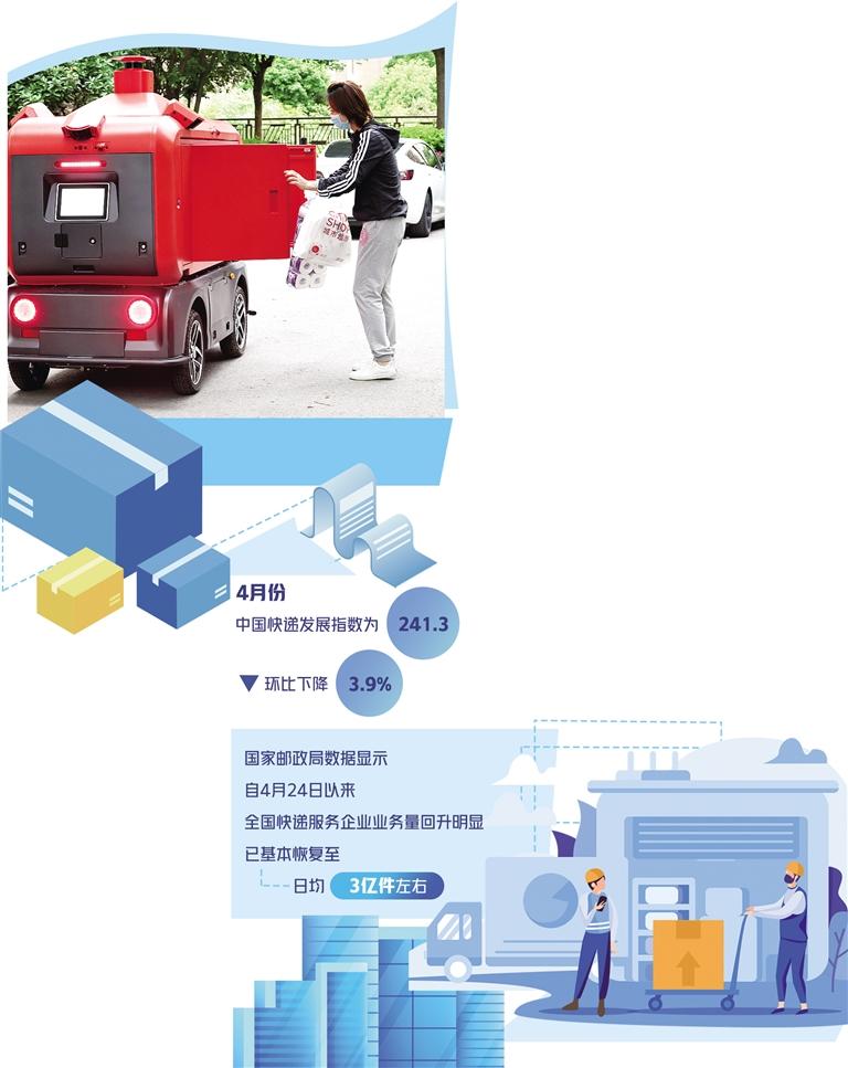 國家郵政局數據顯示,自4月24日以來,全國快遞服務企業業務量回升明顯,已基本恢復至日均3億件左右。從分項指標來看,4月份,消費者快遞服務滿意度78.3分,同比下降0.7分。