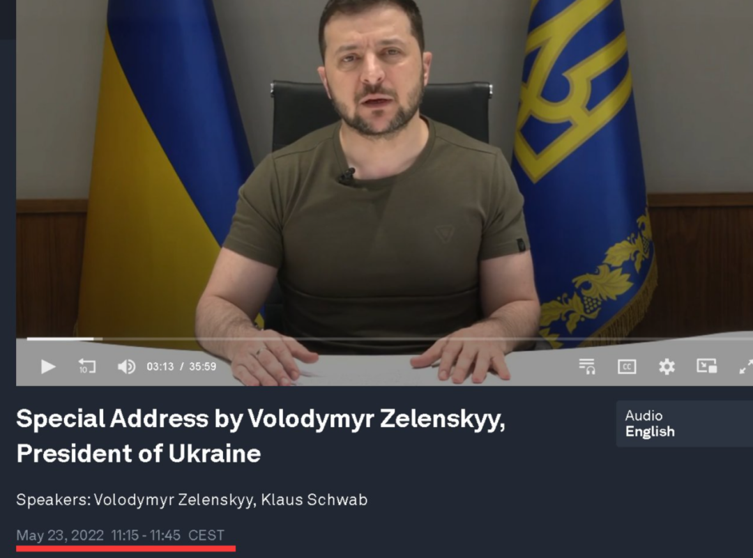 我們先來簡單回顧一下此事的經過。當地時間5月23日上午,正在瑞士達沃斯舉行的世界經濟論壇,邀請烏克蘭總統澤連斯基通過視頻的方式發表了一場演說。