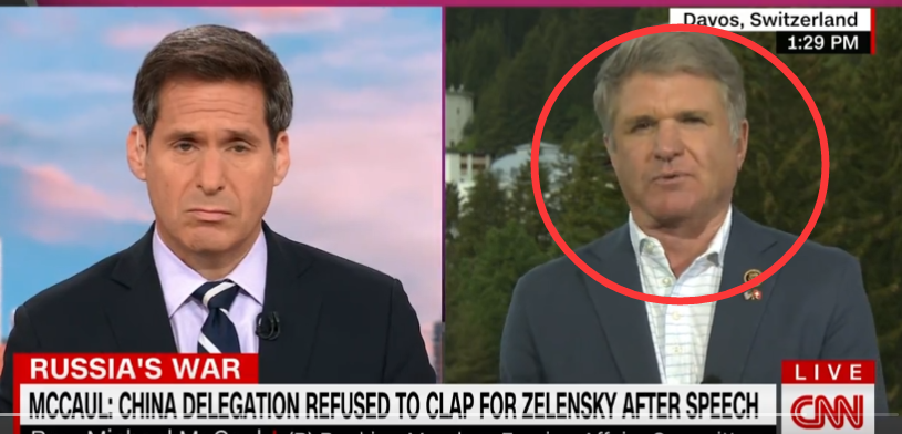 這場演講結束后,一個當時在現場參會的美國政客,突然找到了美國CNN的新聞主播約翰·伯曼(John Berman),稱他拍到了一張“中國代表團”在澤連斯基講話結束后拒絕鼓掌,還迅速離席的照片。這個名叫邁克尓·麥考爾(Michael McCaul)的美國政客還指控說,“中國代表團”的做法說明他們“不支持烏克蘭”,甚至稱中國代表團的手上“沾滿了烏克蘭人的鮮血”。