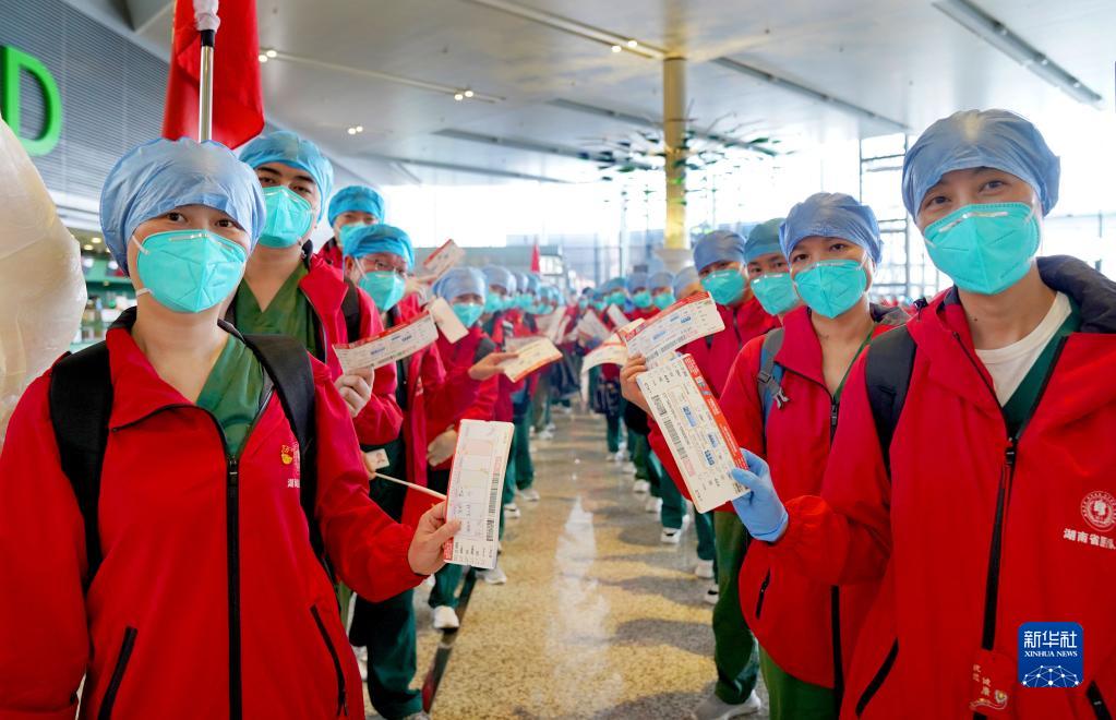 虹橋機場、虹橋高鐵站驟然忙碌起來,全國各地的醫療隊紛紛逆行而至。4月3日,武漢金銀潭醫院援滬醫療隊領隊程芳一下火車,看到很多人前來迎接,不斷說“謝謝”。程芳說:“上海人不用跟武漢人客氣!”