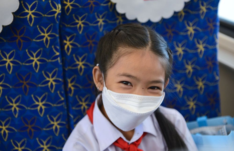 ↑2021年12月3日中老鐵路全線開通運營當天,老撾中老友好農冰村小學學生乘坐從萬象始發的“瀾滄號”動車組列車。