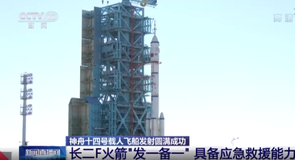 航天科技集團一院、長征二號F運載火箭副總設計師 劉烽:我們是每一發(火箭)從北京出廠之后到這邊豎立之后,進行了相關的一些測試,那么測試完之后就轉為應急狀態,我們接著就把我們原來應急待命狀態(的火箭)轉為正式發射的火箭,所以這兩發是處于相互轉換的一個角色。
