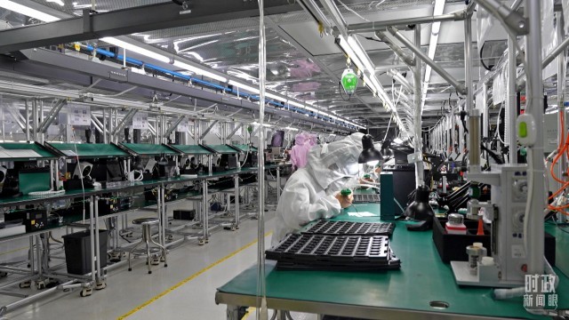 △極米光電有限公司,無塵車間光機組裝線。(總臺央視記者范學禹拍攝)