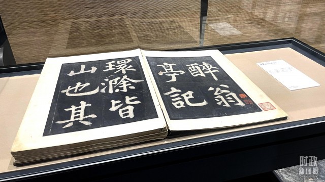 △這是三蘇祠的鎮(zhèn)館之寶之一,楷書《醉翁亭記》拓本。(總臺央廣記者潘毅拍攝)