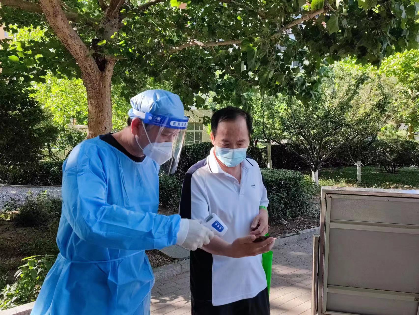 5月30日上午,楊志強利用工作之余,到豐臺區草橋欣園社區進行核酸檢測志愿服務。冒著酷暑,他認真地為居民測體溫。“作為土生土長的豐臺人和示范中心黨支部書記,能為社區疫情防控盡一份力,以實際行動帶動示范中心黨員干部支援充實社區防疫力量,我責無旁貸。”楊志強說。他不僅自己到社區做防疫志愿者,還發動全中心的干部職工積極報名下沉社區或者利用居家辦公時間到社區做志愿者。自4月底以來,示范中心已有10名黨員干部分期分批下沉到石景山、通州、朝陽、西城、豐臺的社區。從4月底至6月9日,示范中心28名黨員干部在居家辦公期間到社區參加核酸檢測、社區卡口值守等志愿服務,共計111人次。在豐臺區緊急啟動全員核酸檢測的關鍵時刻,示范中心所在屬地太平橋街道蓮花池社區急需人手協助核酸檢測,得知情況后,示范中心領導班子指揮物業公司平均每天調派6名人員到核酸檢測點支援屬地街道社區疫情防控,負責維護核酸檢測秩序,這支抗疫小分隊從4月28日上崗,一直服務至今。