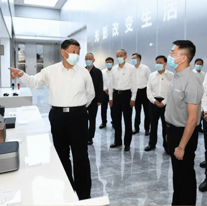 2022年6月8日,習(xí)近平總書記在四川省宜賓市考察了極米光電有限公司。他走進(jìn)公司展廳和生產(chǎn)車間,了解企業(yè)加強(qiáng)自主創(chuàng)新、產(chǎn)品研發(fā)銷售、帶動就業(yè)和當(dāng)?shù)刂С置駹I經(jīng)濟(jì)發(fā)展、出臺紓困幫扶政策等情況。