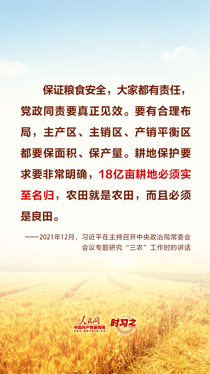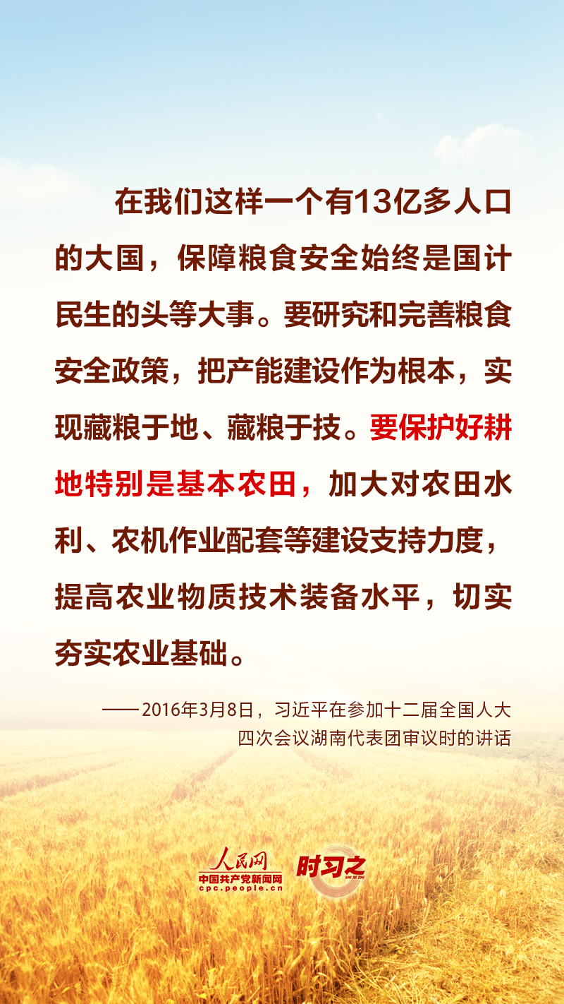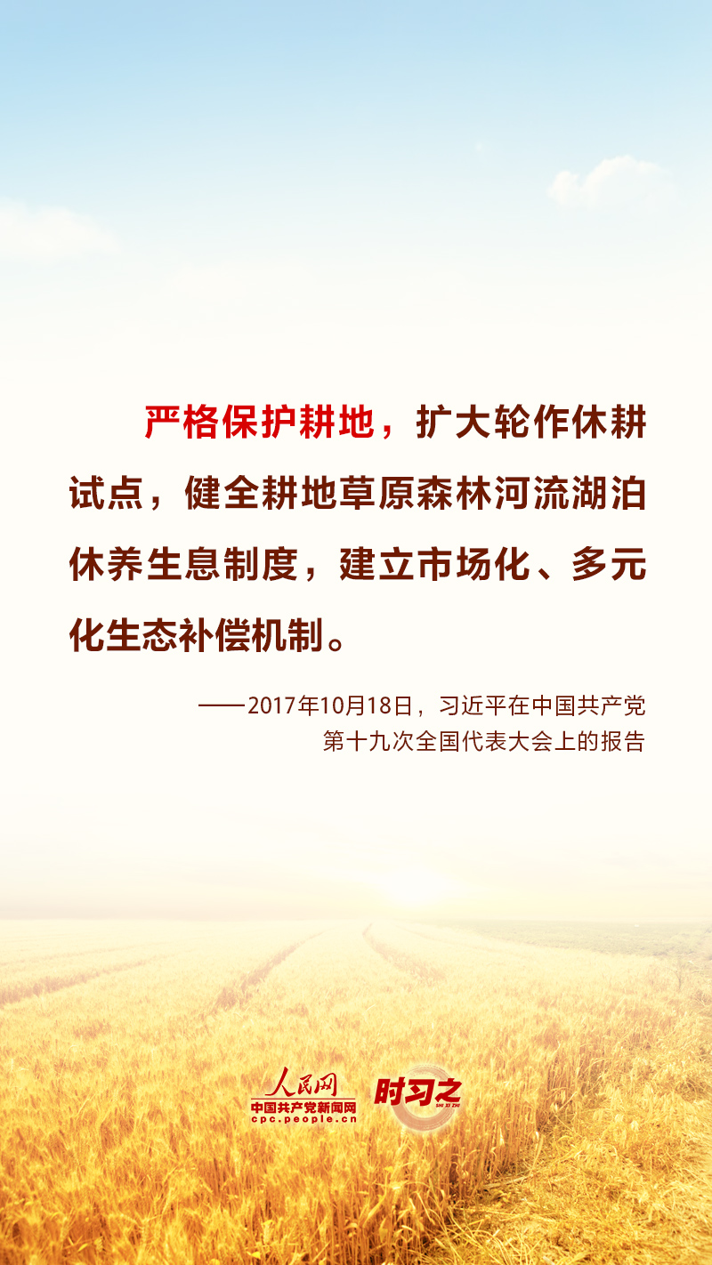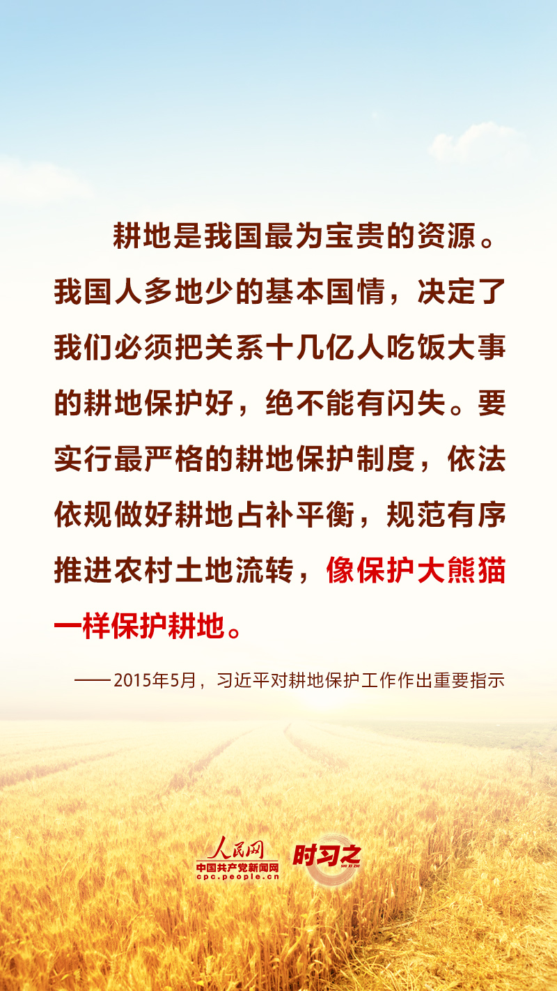 “民非谷不食,谷非地不生。”糧食安全在習(xí)近平總書記心中有著特殊的分量,他多次深入田間地頭察墑情、看苗情、問收成,明確指出“耕地是糧食生產(chǎn)的命根子”。耕地是我國最為寶貴的資源,堅持藏糧于地、端穩(wěn)中國飯碗,“希望的田野”終將麥浪滾滾、稻花飄香。