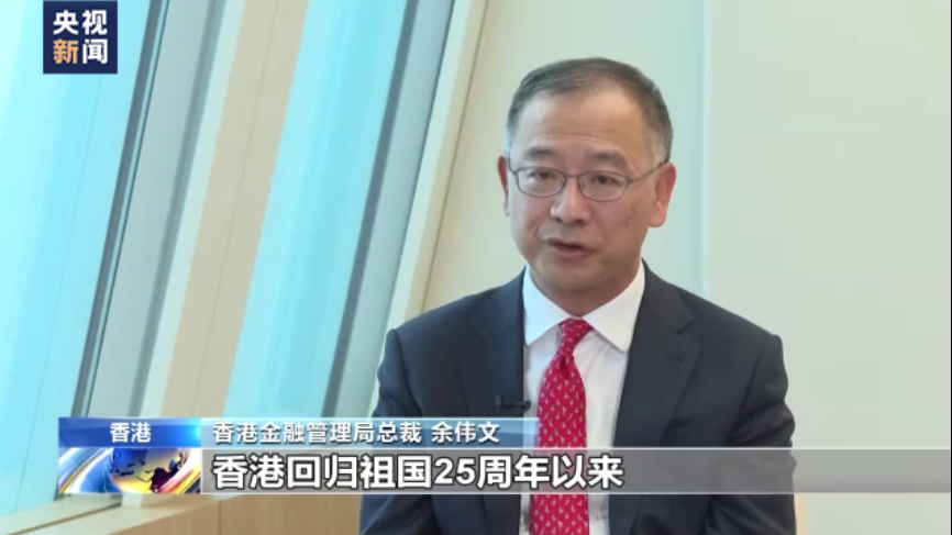 香港金融管理局總裁 余偉文:香港回歸祖國25周年以來,其實香港的金融市場規(guī)模就增加了非常非常多,我們非常獨(dú)特的優(yōu)勢,就是我們背靠祖國,面向國際。我們從很久以來都是擔(dān)當(dāng)一個國際跟內(nèi)地市場的橋梁,所以我看這兩個部分,繼續(xù)保持我們香港金融系統(tǒng)的穩(wěn)定,第二就是把握好國家開放給香港帶來的不同的商機(jī),我覺得就是我們最應(yīng)該做,最能做去貢獻(xiàn)于“一國兩制”有利的發(fā)展的一個地方。
