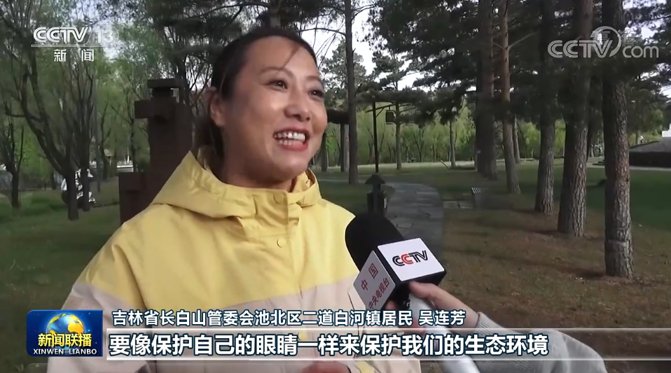 吉林省長白山管委會池北區二道白河鎮居民 吳連芳:要像保護自己的眼睛一樣來保護我們的生態環境,也希望世界各地的所有的游客都能到我們長白山來旅游、來做客,來感受一下我們長白山天然大“氧吧”的這種氛圍,讓長白山成為所有人我心向往之的旅游勝地。