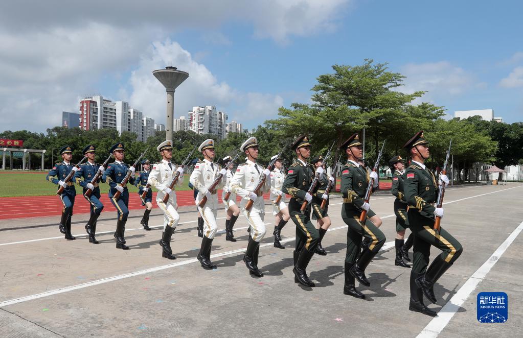 駐香港部隊(duì)某旅裝步一連組織儀仗專業(yè)訓(xùn)練(5月28日攝)。新華社發(fā)(易定 攝)