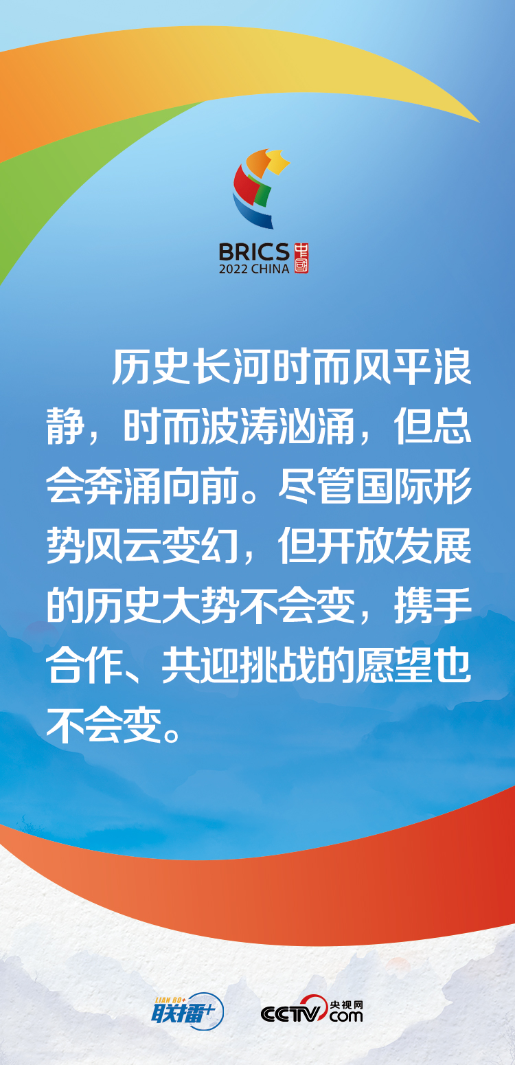 聯(lián)播+“盡管國際形勢風(fēng)云變幻,但開放發(fā)展的歷史大勢不會變,攜手合作、共迎挑戰(zhàn)的愿望也不會變。”6月22日,習(xí)近平主席以視頻方式出席金磚國家工商論壇開幕式并發(fā)表主旨演講,再答“時代之問”。