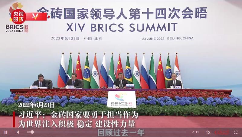 國(guó)家主席習(xí)近平23日晚在北京以視頻方式主持金磚國(guó)家領(lǐng)導(dǎo)人第十四次會(huì)晤。
