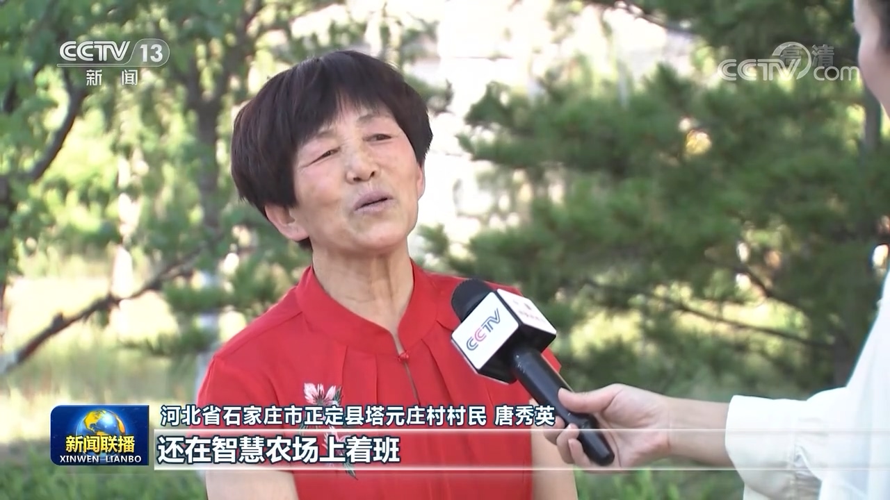 河北省石家莊市正定縣塔元莊村村民 唐秀英:現在我們塔元莊村環境非常好,像我六十多歲了,一個月分七百塊錢養老金,還在智慧農場上班,工資待遇都挺好。