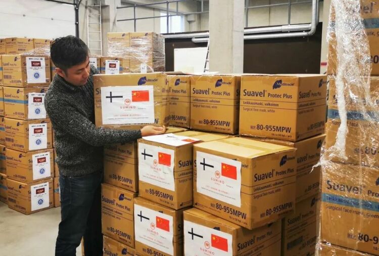 2020年1月31日,芬蘭赫爾辛基,當(dāng)?shù)厝A人協(xié)助整理捐贈(zèng)國(guó)內(nèi)的物資 朱昊晨攝 / 本刊