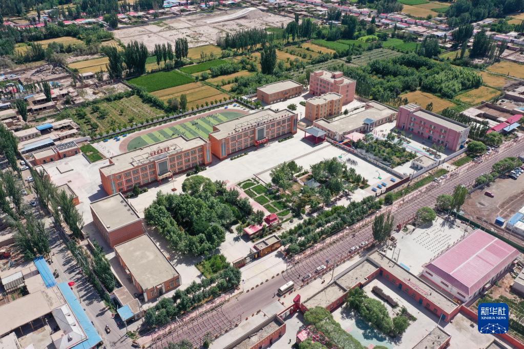 這是新疆喀什地區疏附縣托克扎克鎮中心小學(2022年6月10日攝,無人機照片)。新華社記者 丁磊 攝