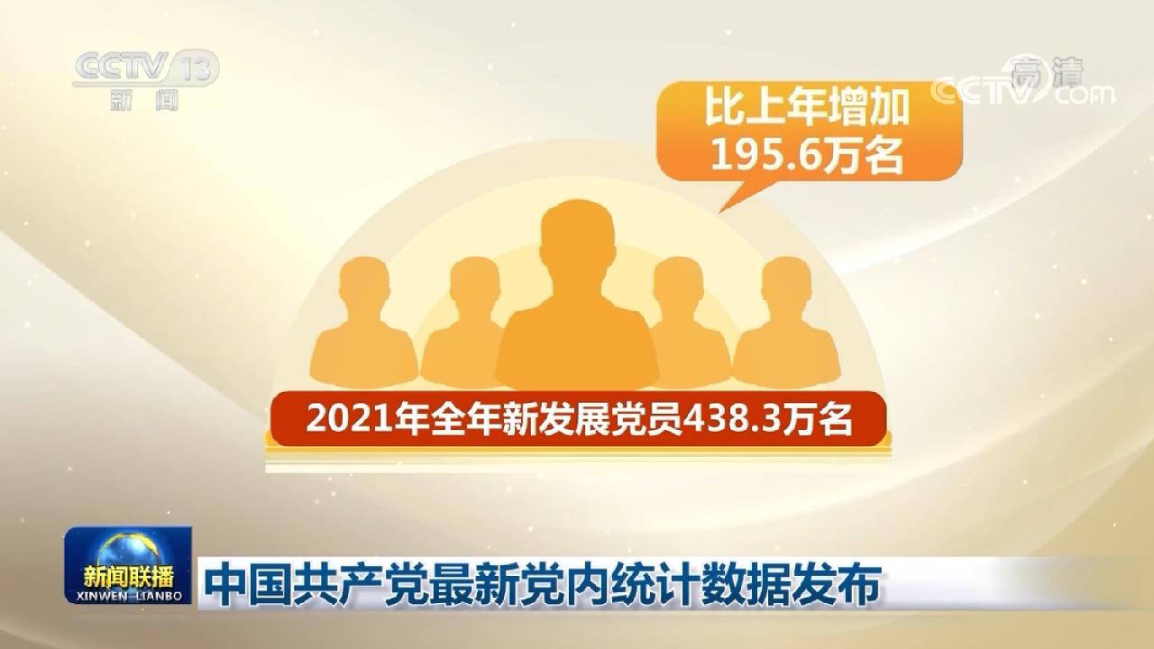 黨員隊(duì)伍規(guī)模進(jìn)一步壯大。黨員總數(shù)比上年增加3.7%,比黨的十八大召開時(shí)增加15.9%。2021年全年新發(fā)展黨員438.3萬名,比上年增加195.6萬名。