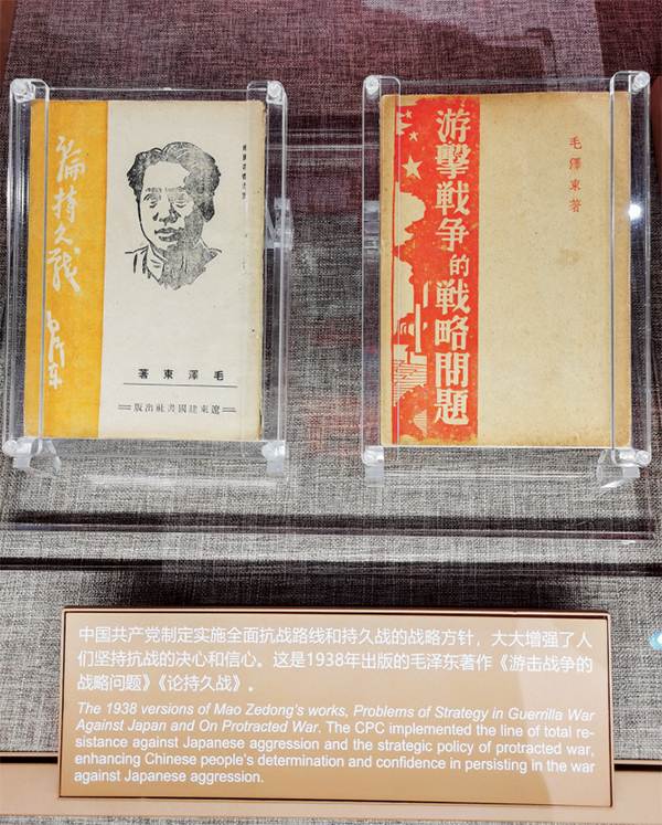 一百年來,黨總是能夠在重大歷史關頭從戰略上認識、分析、判斷面臨的重大歷史課題,制定正確的政治戰略策略,這是黨戰勝無數風險挑戰、不斷從勝利走向勝利的有力保證。圖為上海中共一大紀念館展出的1938年出版的毛澤東著作《論持久戰》和《游擊戰爭的戰略問題》。 人民視覺供圖