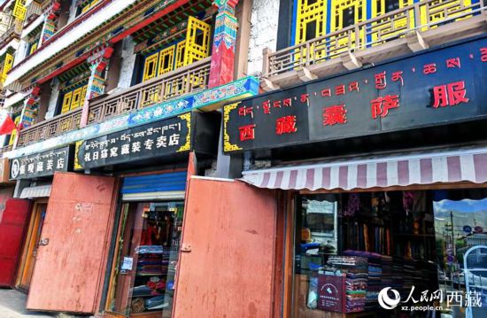 環繞拉薩八廓古城,開滿了藏裝店。人民網 李海霞攝