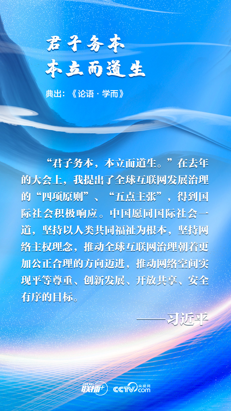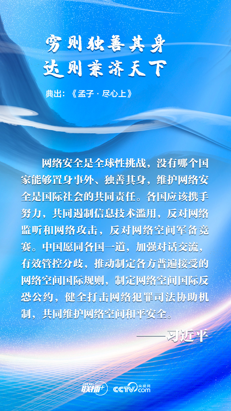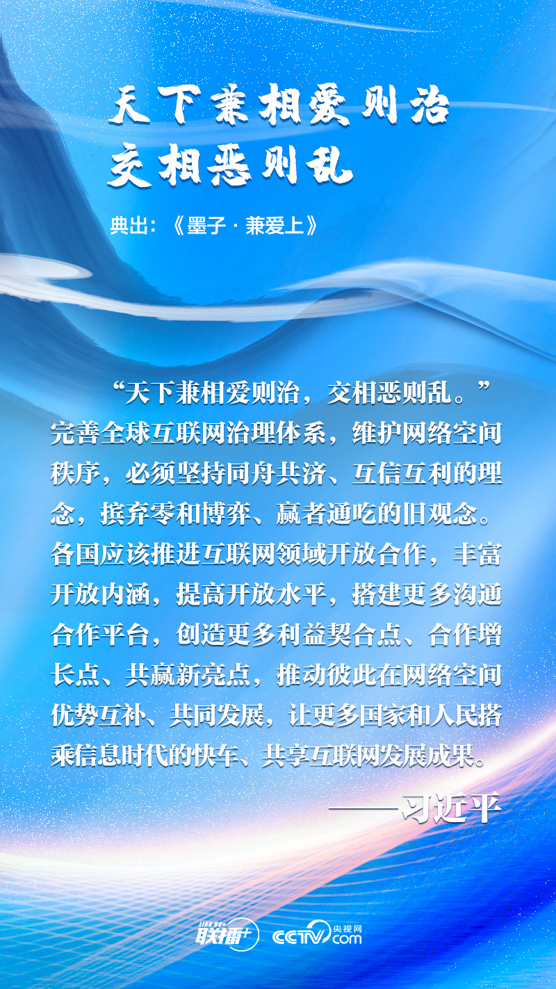 聯播+“網絡空間是人類共同的活動空間,網絡空間前途命運應由世界各國共同掌握。各國應該加強溝通、擴大共識、深化合作,共同構建網絡空間命運共同體。”